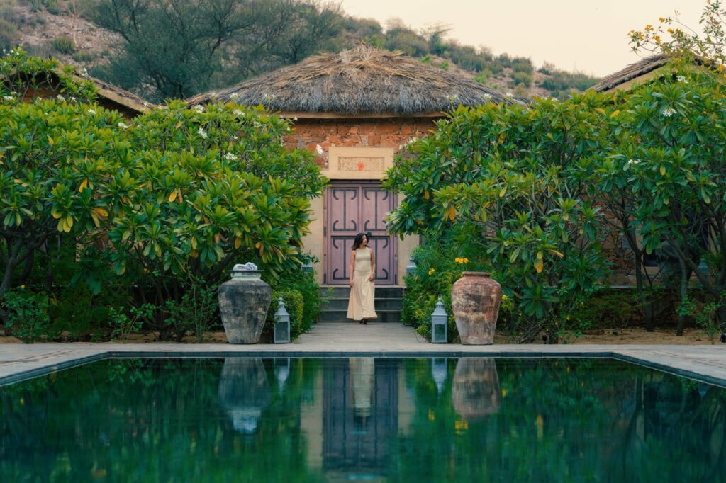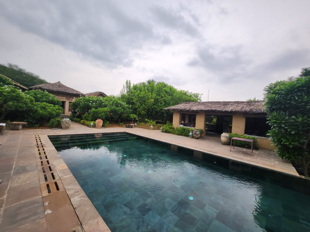 Every experience here is made to feel personal and special; guests can enjoy fresh meals, cooked with vegetables and seasonings from the resort’s own organic farm, which gives the taste of fresh from the garden, sharing a meal under a sky full of stars with soft candlelight and the gentle sounds of nature all around you. If you love to explore nearby villages, meet the local people and get the real taste of Rajasthani traditions, rest in the shade of small woods, or relax by your private pool with complete peace around you. In the mornings, birdsong and the soft view of the Aravalli hills make every day begin gently.
